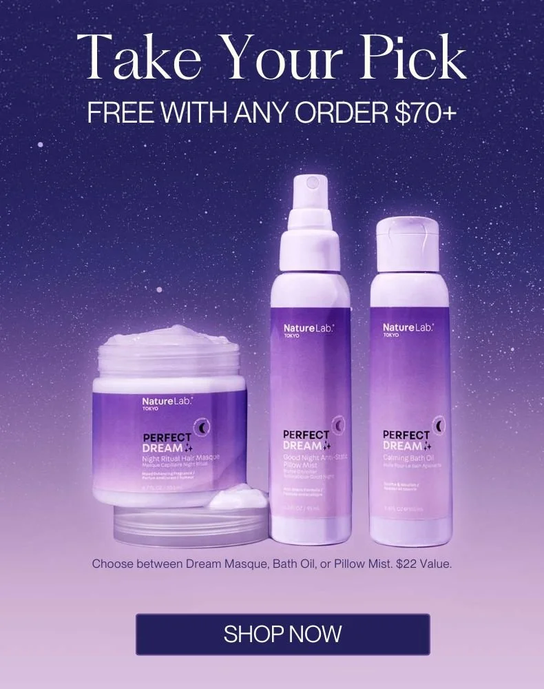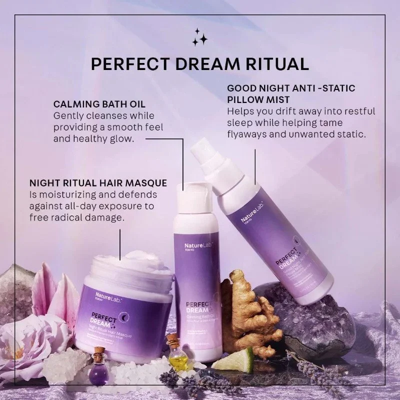 NatureLab. TOKYO’s Dream collection is formulated to nourish hair and skin while promoting relaxation, perfect for a tranquil bedtime routine.